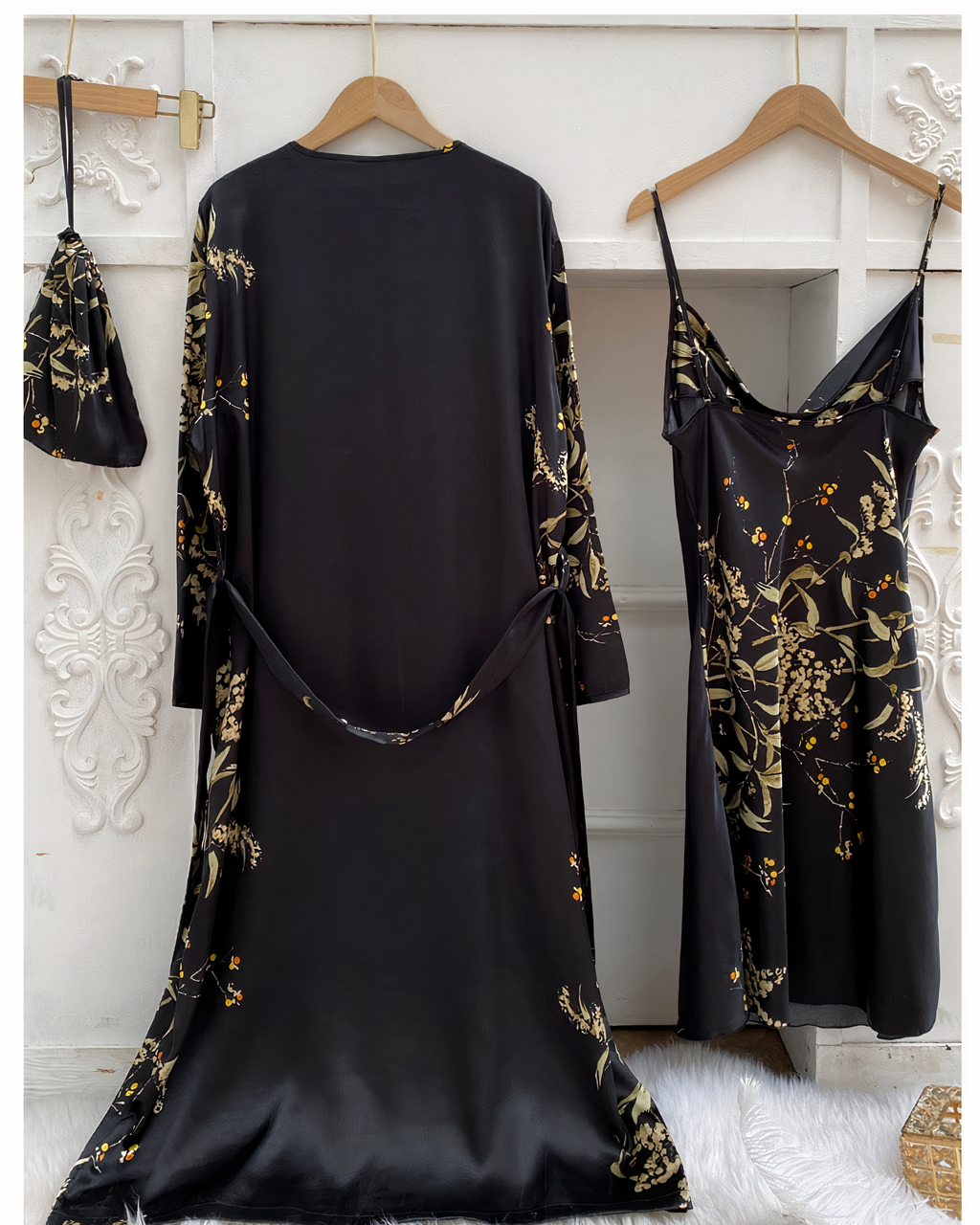 Cet ensemble est tout simplement magnifique et tendance ! Conçue avec des matériaux légers et d’une coupe parfaitement flatteuse, cette nuisette aura fière allure sur n’importe quelle femme. Un kimono accompagne cet ensemble pour vous offrir un look chic. La texture satinée joue la carte de la sophistication et apporte à votre silhouette un style sensuel intemporel. Le tissu extensible délicat offre une douceur sensationnelle que vous ne manquerez pas d’apprécier ! Offrez-vous une touche féminine supplémentaire avec cet ensemble magnifique dont personne ne saura résister !