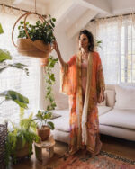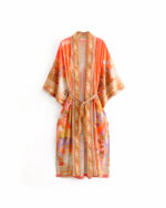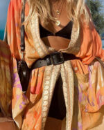 Ce joli kimono style bohème dans les tons d’orange est un vêtement que vous allez adorer porter au printemps comme en été. Il est à la fois léger, doux et agréables au touché. Portez-le avec un maillot de bain ou avec un short et des talons pour un look idéal pour les sorties du soir cet été.