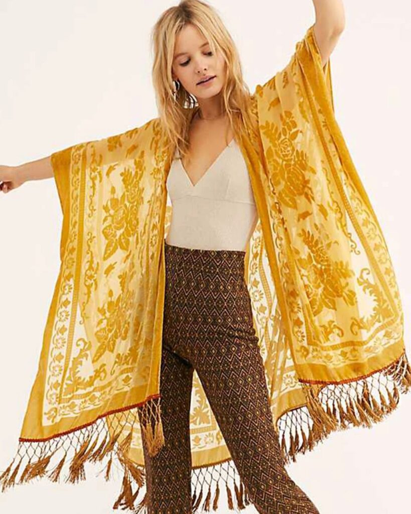 Le kimono boheme femme bien qu’il soit destiné à créer un beau look hippie chic conviendra à toutes les autres utilisations. Vous pouvez donc le mettre pour sortir avec vos copines.
