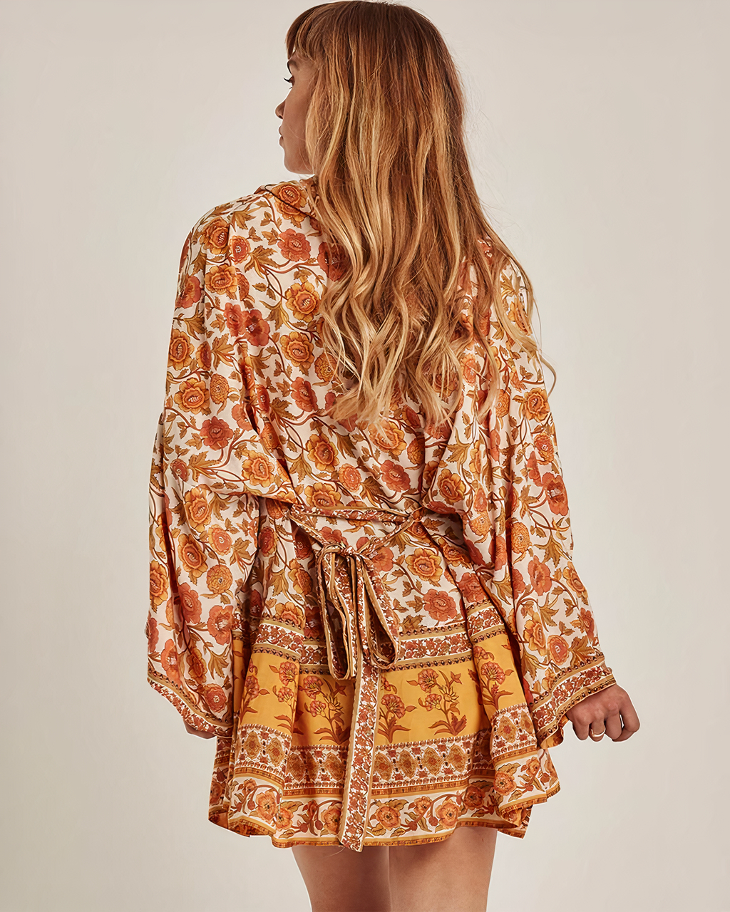L’imprimé floral jaune délicat est accrocheur et féminin, tandis que la silhouette d’inspiration bohème est parfaite pour ajouter un peu de drame à votre tenue. Le tissu léger est parfait pour les chaudes journées d’été, et peut être facilement habillé ou décontracté selon votre humeur.