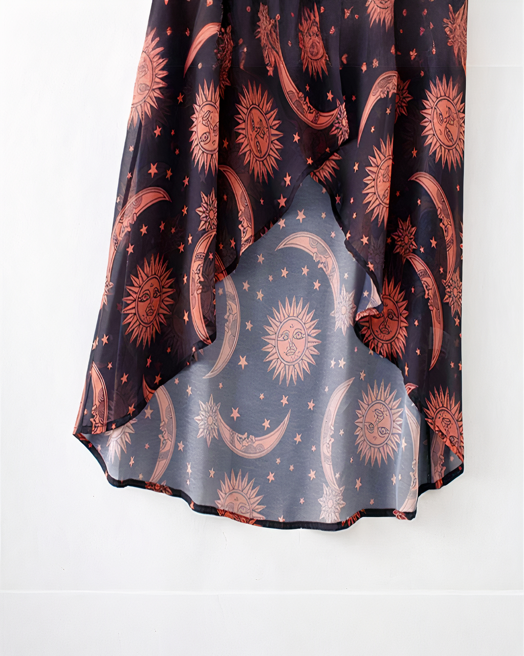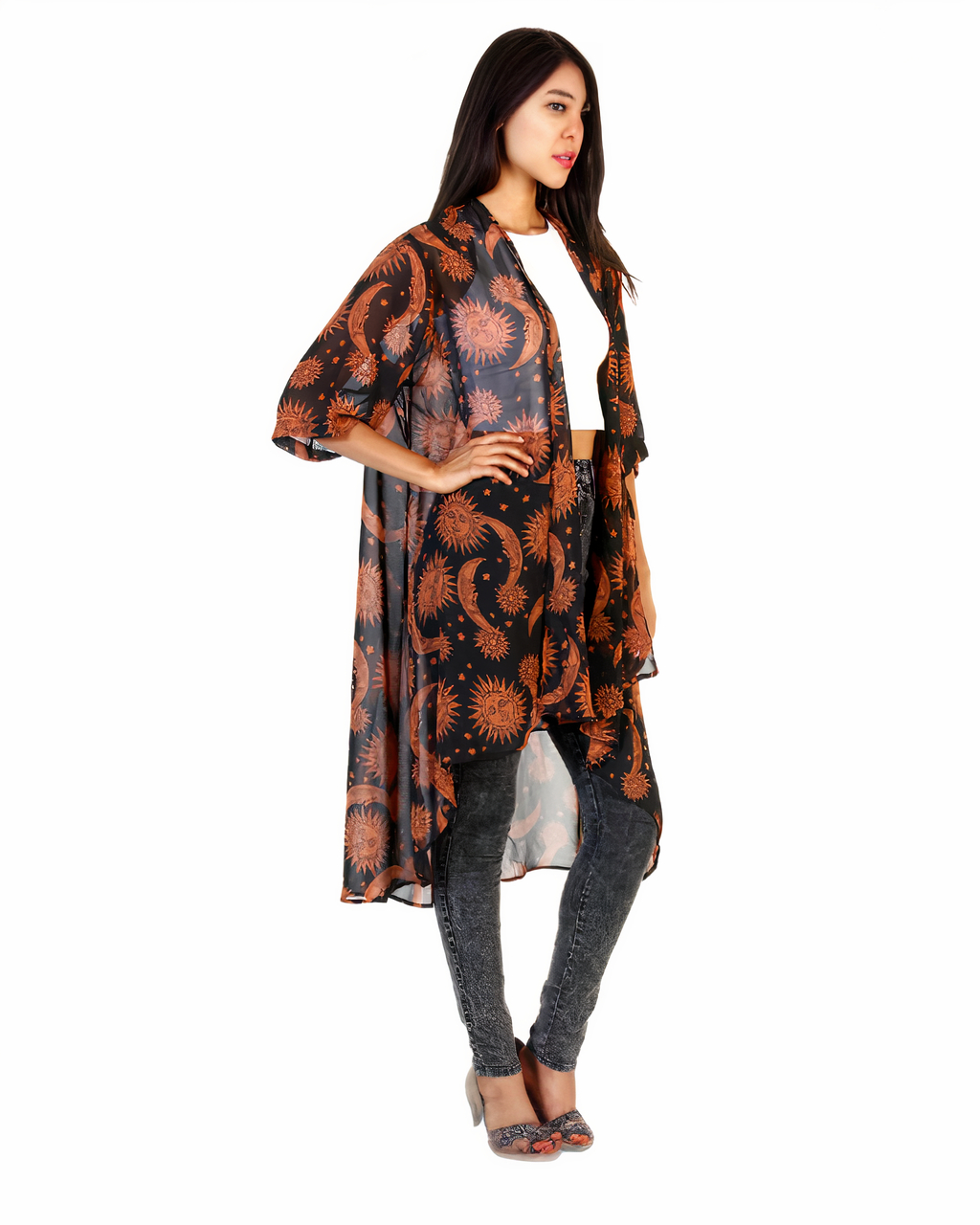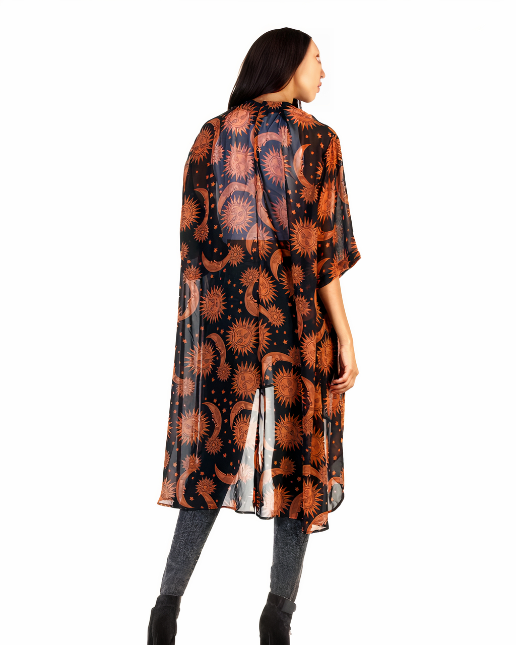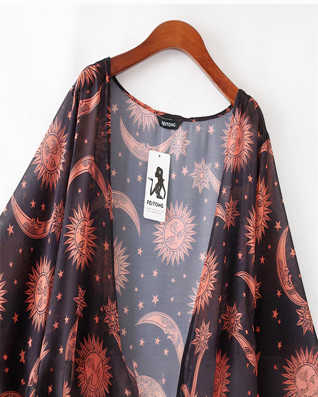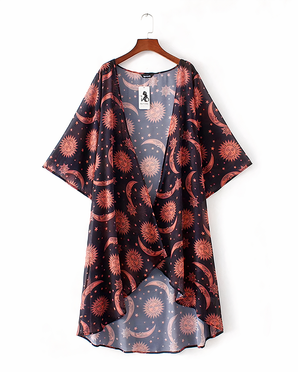 Ce joli cardigan ample est orné de dessins de la lune et du soleil. Portez près de vous votre croyance en le cycle lunaire et votre amour pour le soleil. Ils seront près de vous tout l’été !