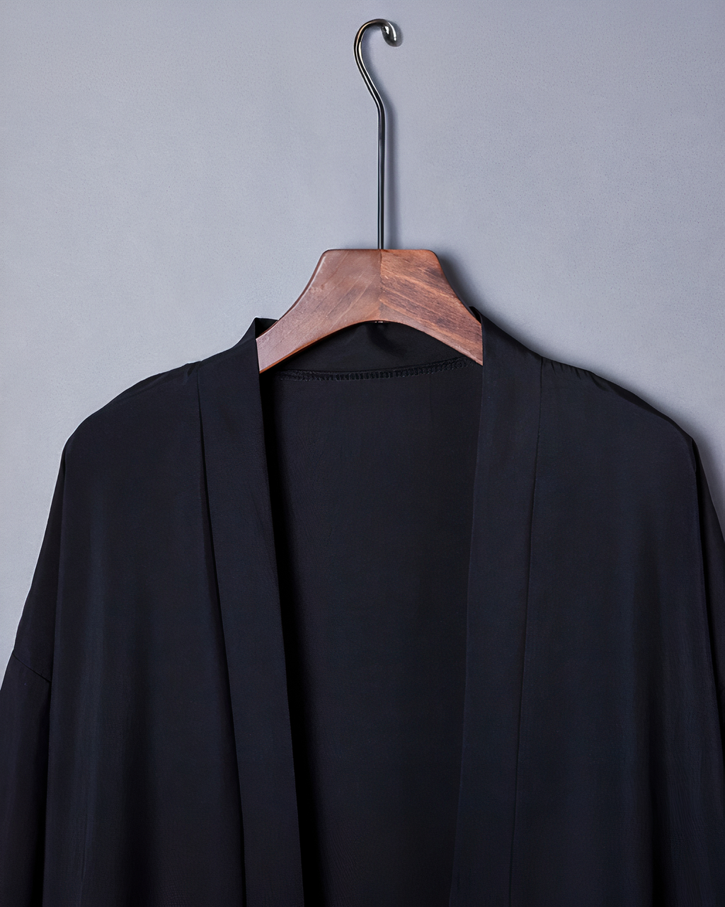 Qui a dit que la saison des kimonos se terminait avec les premières lueurs de l’automne ? Ce modèle de kimono uni noir est un vêtement chic, élégant et sophistiqué que vous pourrez porter avec toutes vos tenues habituelles. À vous de l’agrémenter de quelques bijoux pour un style unique qui n’appartient qu’à vous !