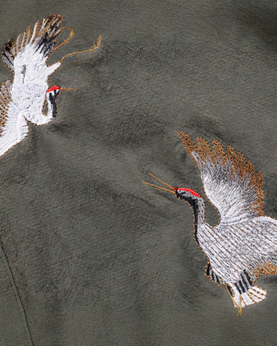 Les deux oiseaux brodés sur le bas de la veste sont des grues, symboles de la culture japonaise. Vous allez adorer jouer avec les limites des cultures tout en renouvelant votre garde-robe.