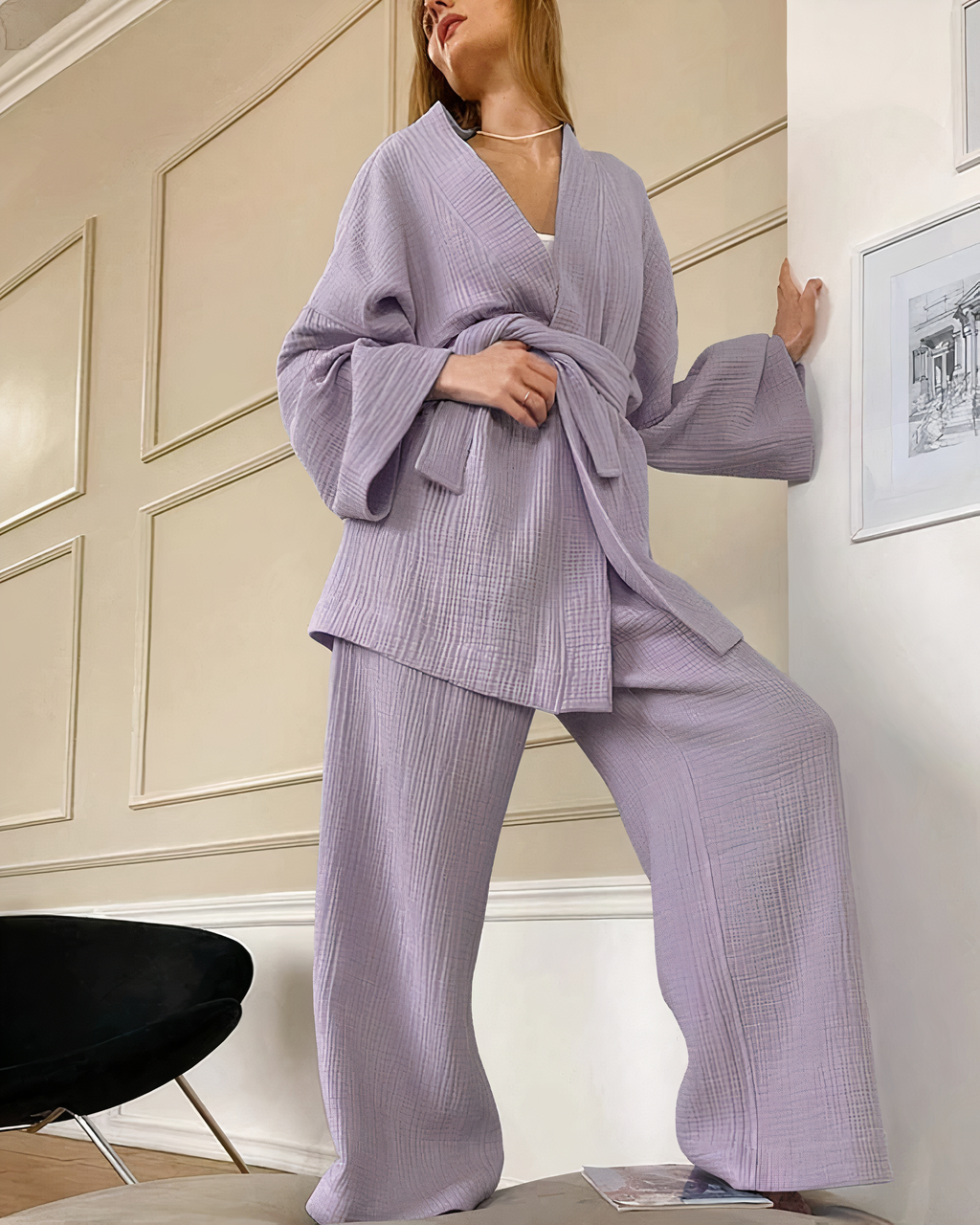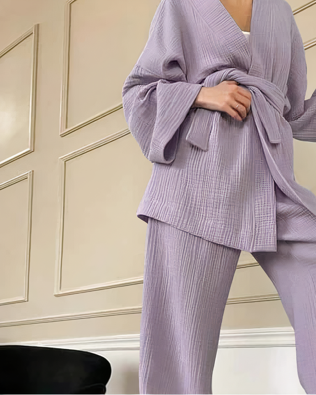 Cet ensemble kimono court femme en crêpe uni violet clair est parfait pour toute femme qui souhaite se sentir belle et confortable à la fois. La matière en crêpe violet clair est douce et luxueuse, ce qui en fait un plaisir à porter. La coupe kimono est flatteuse et élégante, tandis que le short est confortable et pratique. Cet ensemble est parfait pour toute occasion, que vous vous habilliez pour un événement spécial ou que vous souhaitiez simplement vous détendre avec style.