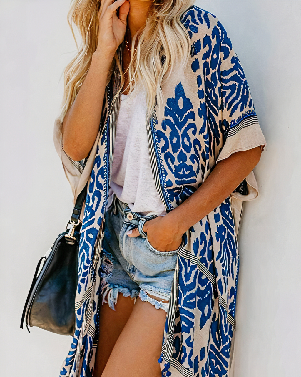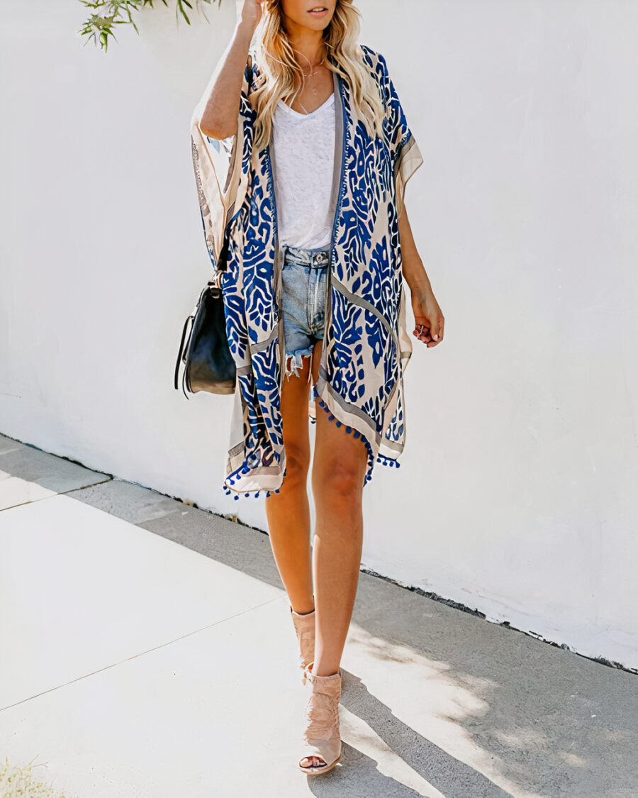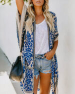 Vous voulez acheter un vêtement mignon et léger à porter à la plage ? Vous devriez peut-être envisager de vous procurer de ce cardigan kimono bleu marine style bohème pour femme. Cette belle tenue est un habit de plage super tendance, élégant et parfait pour la saison estivale.