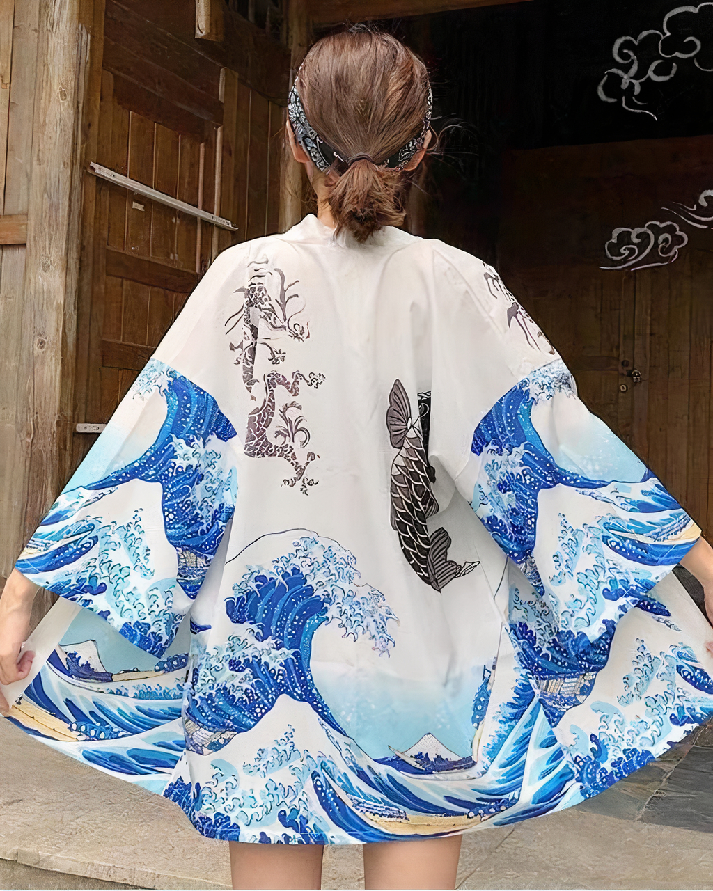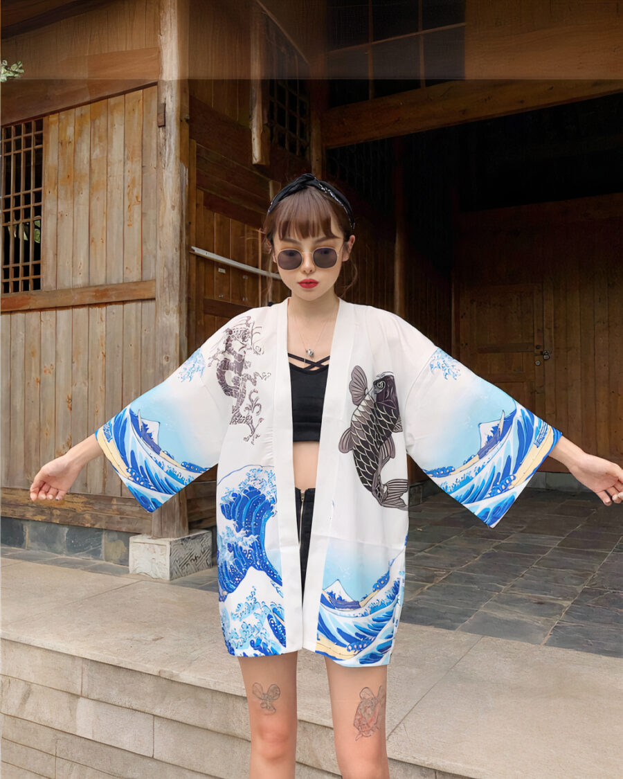 Il est difficile de ne pas craquer pour ce kimono super stylé pour femme. C’est un vêtement traditionnel très tendance au japon. Il est agrémenté avec des magnifiques imprimés de dessins colorés sur le dos, ce qui est tout à fait accrochant. C’est une tenue que vous pouvez porter lors de vos séances photos, vos sorties à la plage et autres occasions.