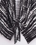 Vous méritez de vous envelopper de douceur, chaque jour. Ce kimono court noir et blanc, en rayonne fluide, caresse votre peau comme une brise d’été. Léger, respirant, il vous accompagne dans vos instants les plus précieux : un matin paisible, un après-midi à flâner, un moment pour vous retrouver.