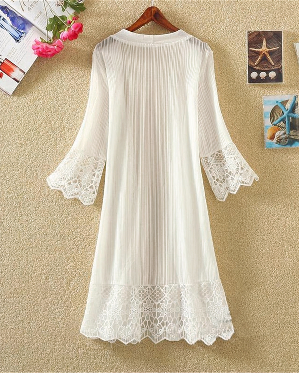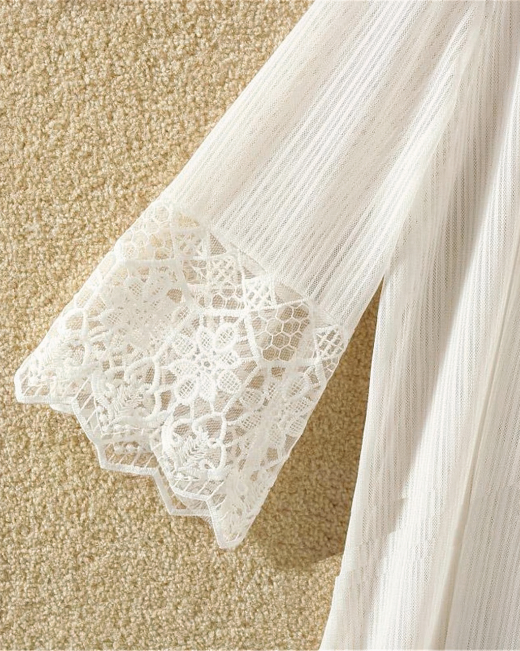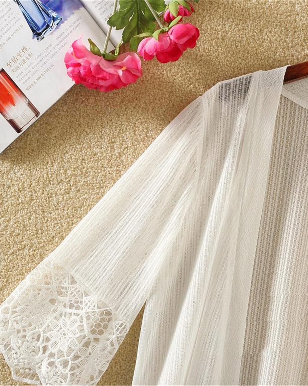 Voici notre kimono à manches longues en dentelle blanche pour femme ! Cette pièce est parfaite pour l’été et pour le printemps, et peut être habillée pour toutes les occasions ! La délicatesse de la dentelle ajoutera une touche de romantisme à n’importe quelle tenue.