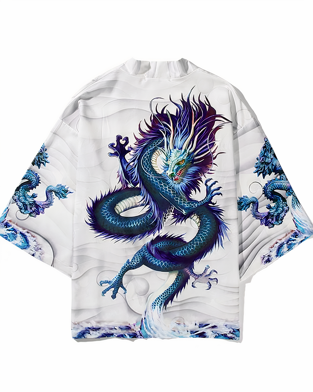 Vous êtes attirée par l’esthétique des dragons ? Celui-ci saura vous impressionner ! Ce beau dragon bleuté imprimé sur un kimono léger représente la force et la puissance de la tradition. Libre à vous de le porter avec la tenue qui vous inspire le plus. Tout est permis !