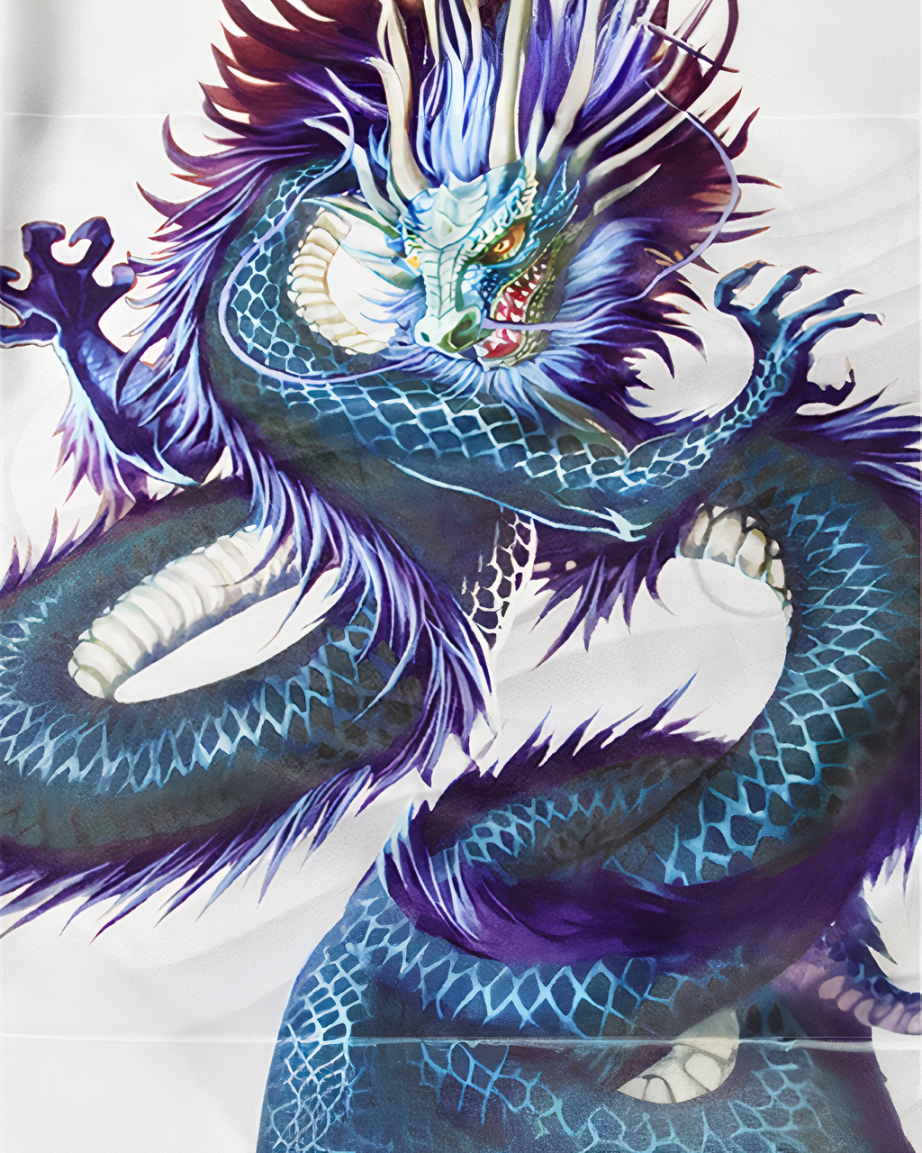 Kimono japonais blanc dragon bleuté