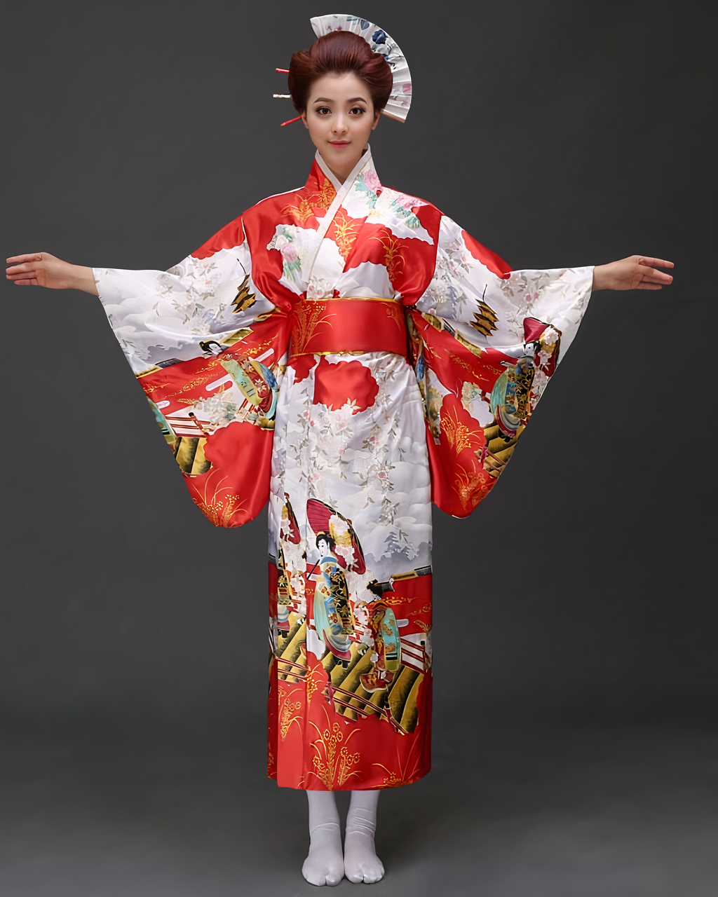 Vous recherchez un ajout unique et magnifique à votre garde-robe ? Découvrez ce magnifique kimono japonais rouge et blanc pour femme !