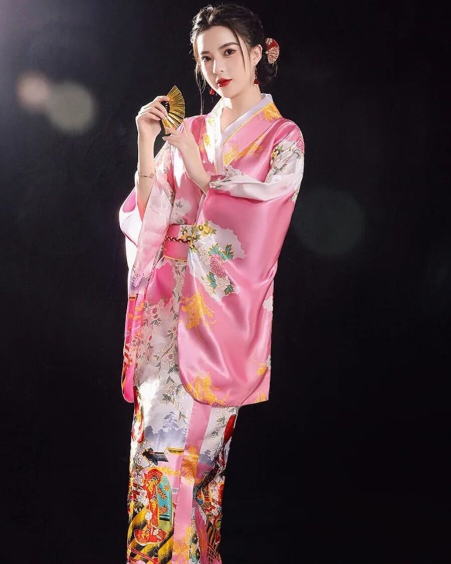 Ce kimono traditionnel japonais rose ne se contente pas d’habiller : il raconte une histoire. Celle d’un art ancestral, d’un raffinement intemporel, et d’un féminin assumé. En le portant, vous vous reliez à une culture empreinte de grâce, de respect et de beauté.