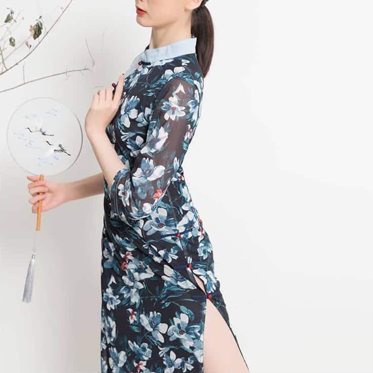 La robe arbore un fond bleu joliment ponctué par de délicats motifs fleuris, qui s’étendent en fragments sur toute sa surface. Les motifs évoquent la beauté et la grâce des jardins japonais traditionnels, offrant ainsi un style élégant et authentique. Que vous la portiez pour des occasions spéciales ou pour votre quotidien, cette robe japonaise bleue sera un choix parfait pour celles qui cherchent à ajouter une touche Japonaise moderne dans leur garde-robe. Vous pouvez facilement l’accessoiriser avec vos chaussures préférées ou simplement avec des sandales simples afin de créer votre propre style unique.