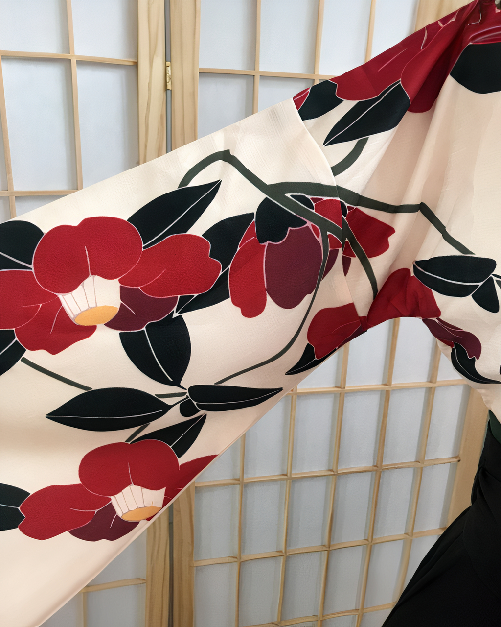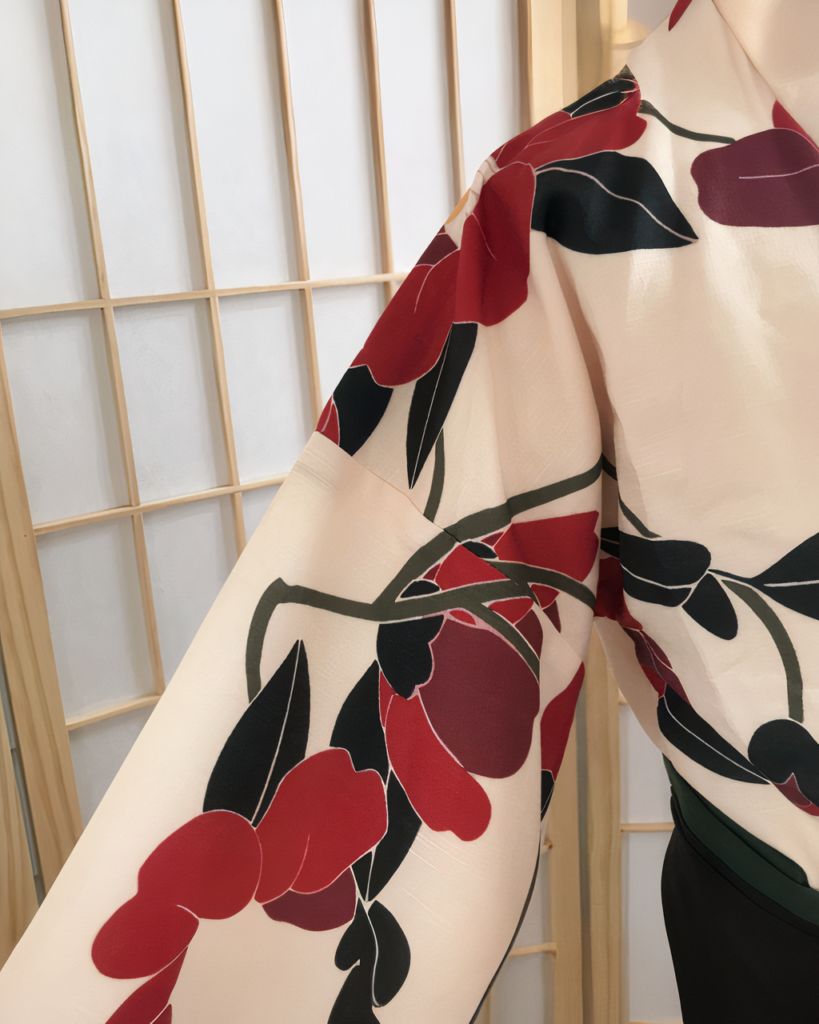 Cette robe kimono pour femme est un vêtement traditionnel japonais très tendance. Elle est caractérisée par une ceinture qui se noue sur le devant, des manches larges et d’une jupe longue. Elle est composée de divers dessins de fleurs sur le haut avec une belle combinaison de couleurs.