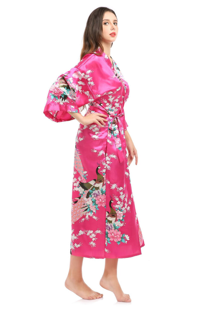 Le kimono lingerie japonais femme rose à motif de paon est un vêtement traditionnel magnifiquement conçu pour offrir non seulement un style élégant, mais également une touche culturelle unique.