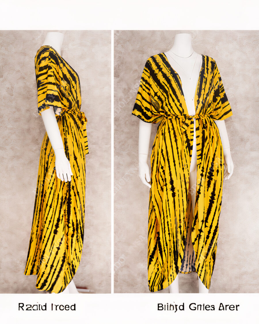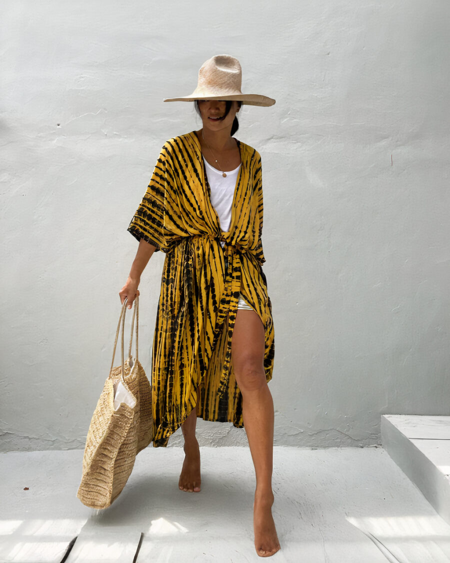 Si vous voulez vous promener à proximité de la plage, nous vous recommandons de porter ce cardigan kimono jaune pour femme. C’est un vêtement d’été léger qui vous mettra à l’aise et vous vous protégera du soleil en même temps. Il a un style bohème et un design élégant qui plairont à toutes les femmes.