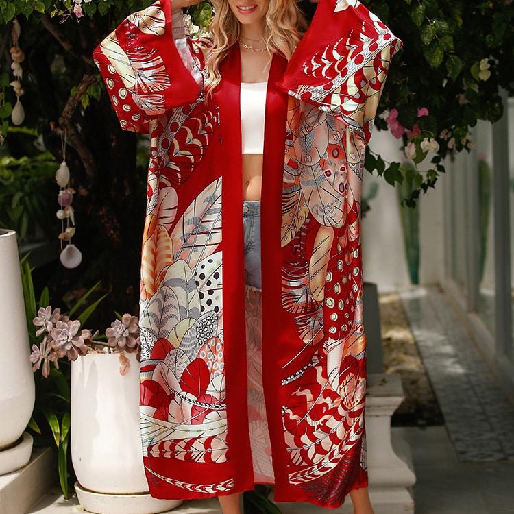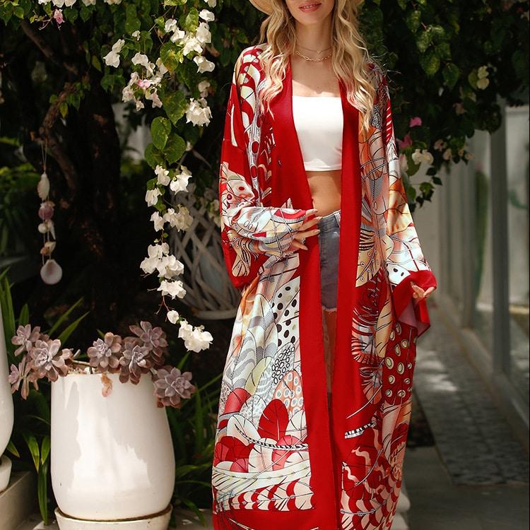 Le kimono long femme rouge fluide est un vêtement élégant et sophistiqué qui apportera une touche de glamour à n’importe quelle tenue.