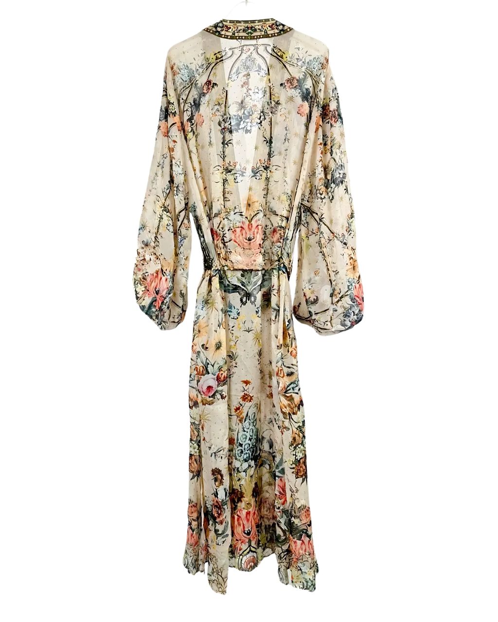 Porté ouvert sur une tenue fluide ou ceinturé à la taille, ce kimono devient une déclaration de style : douce, poétique et affirmée. Loin des tendances éphémères, il incarne votre goût pour la beauté intemporelle. Une invitation à cultiver l’élégance, même dans les instants les plus simples.
