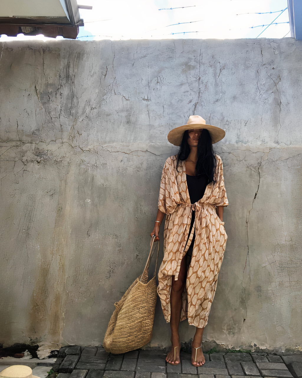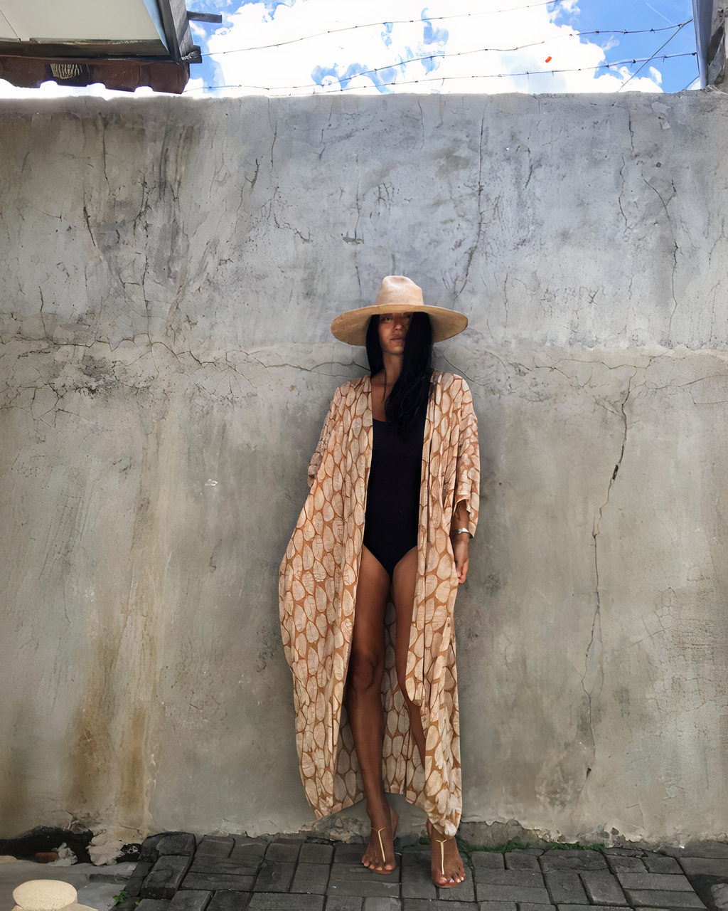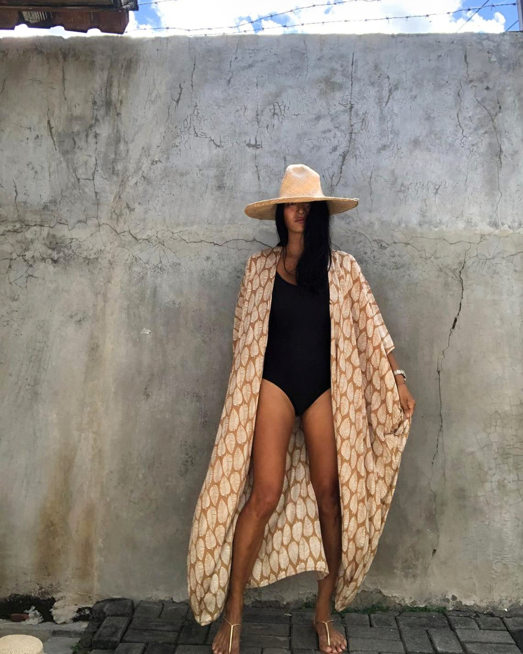 Kimono de plage marron bohème pour femme
