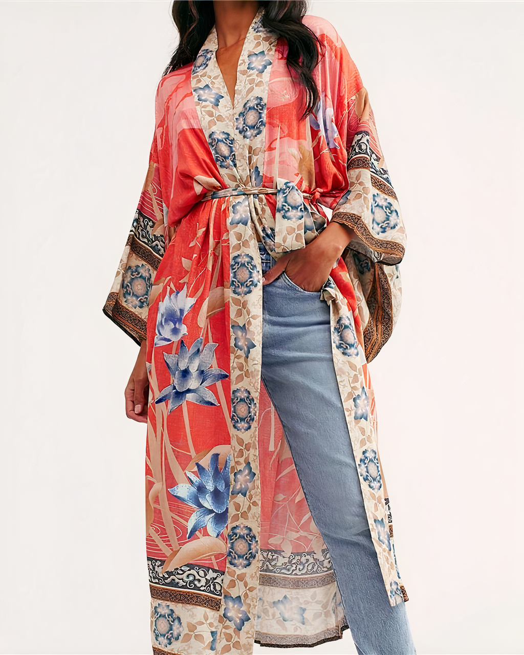 Si vous êtes à la recherche d’un vêtement tendance à porter cet été, pourquoi ne pas jeter un œil à ce cardigan kimono à motif floral pour femme ? Cette tenue est créée pour toutes fashionistas qui aiment le style bohème. Le motif floral lui confère une touche d‘élégance. De plus, sa coupe ample et fluide est parfaite pour vous garder au frais.