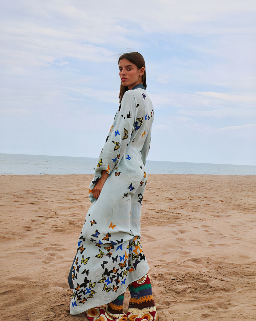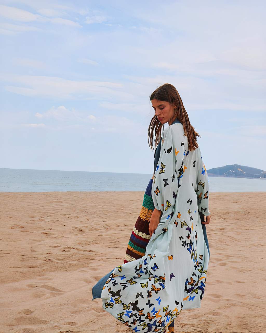 Vous êtes à la recherche d’un vêtement tendance à porter en été ? Pourquoi ne pas jeter un œil à ce kimono style bohème pour femme ? Il présente un motif artistique de papillons, ce qui le rend unique et accrocheur.