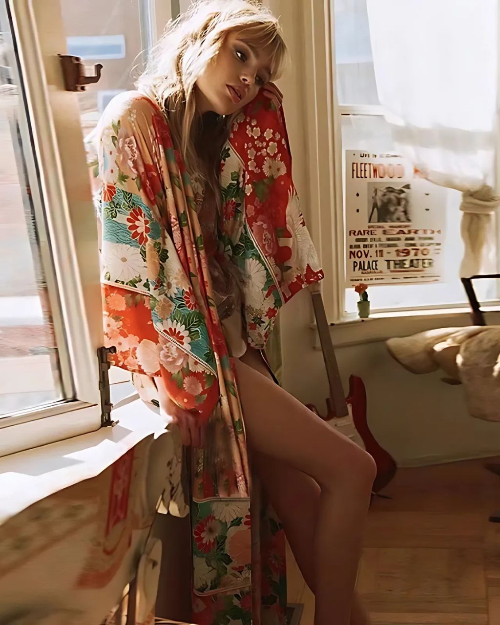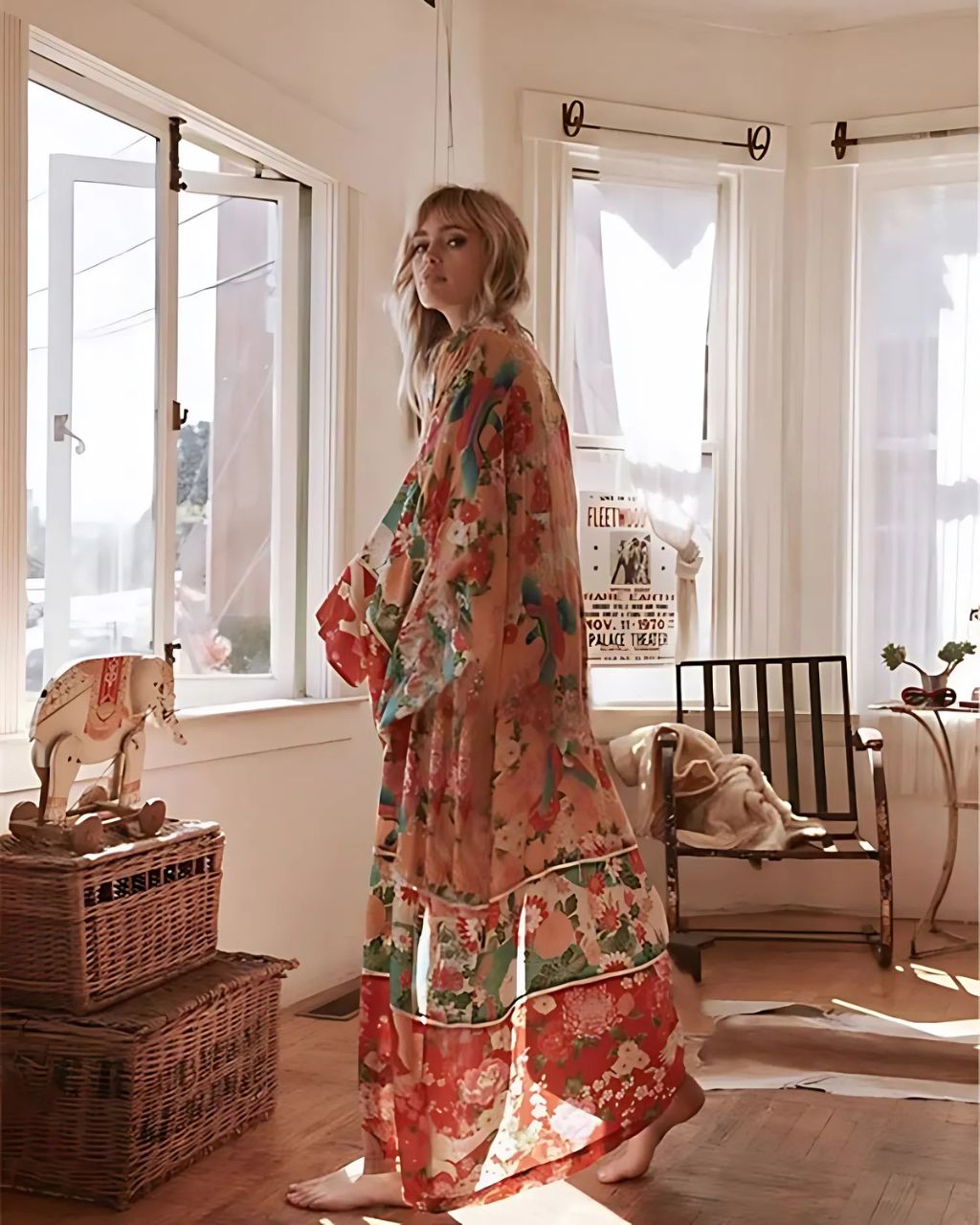 Imaginez-vous au bord de l’eau, le soleil caressant votre peau, enveloppée dans la légèreté de ce kimono de plage bohème à l’imprimé fleuri. Son tissu fluide vous accompagne dans chaque mouvement, tandis que ses motifs fleuris vous connectent à la nature.