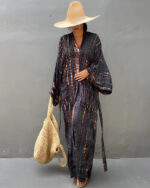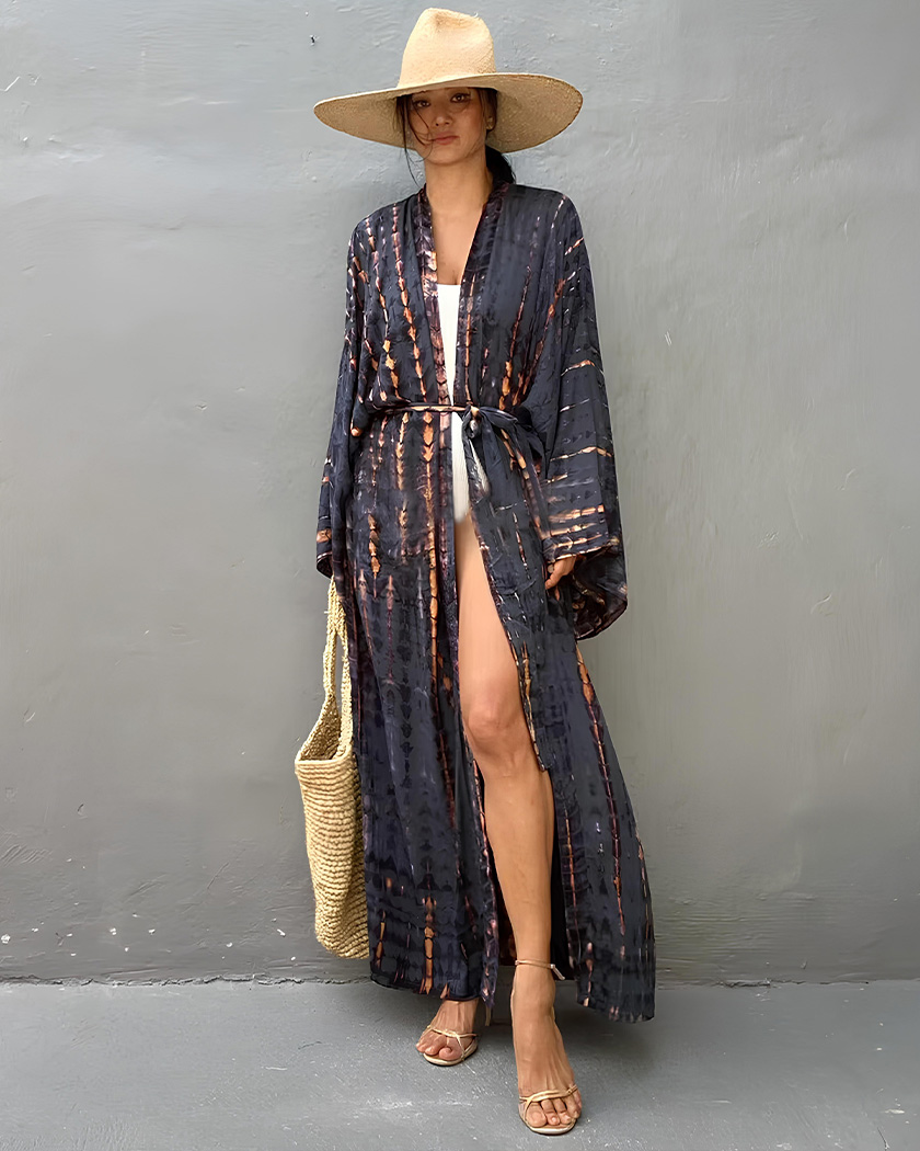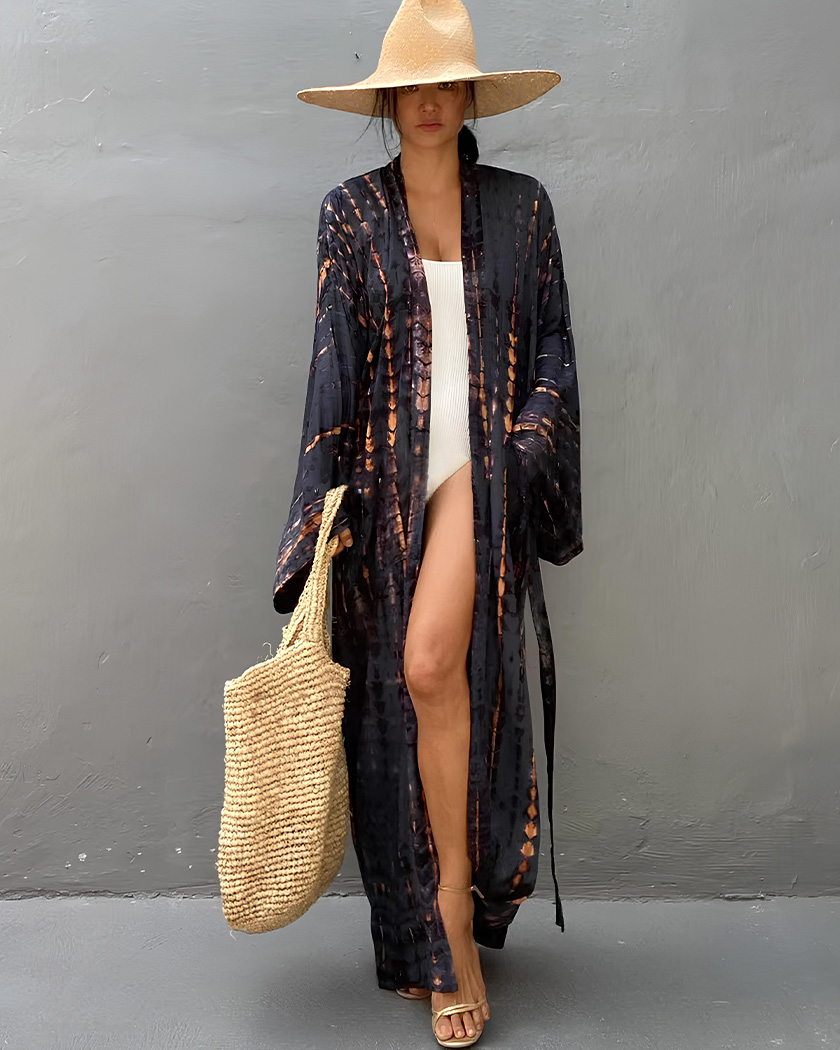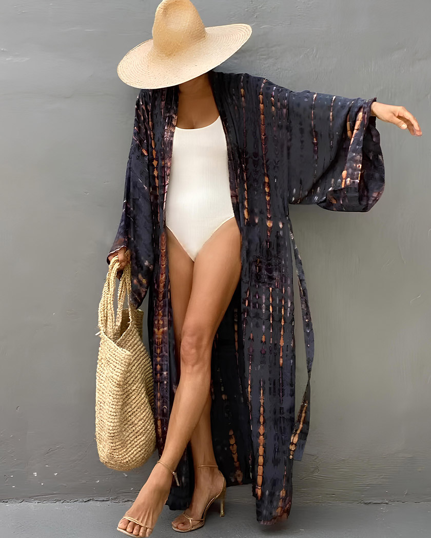 Ses motifs tie-dye rappellent l’esprit bohème d’un été sans contrainte, tandis que la coupe longue vous donne une silhouette élancée. Conçu en coton respirant, ce kimono vous accompagne des plages ensoleillées aux soirées douces, sans aucun compromis sur votre confort.