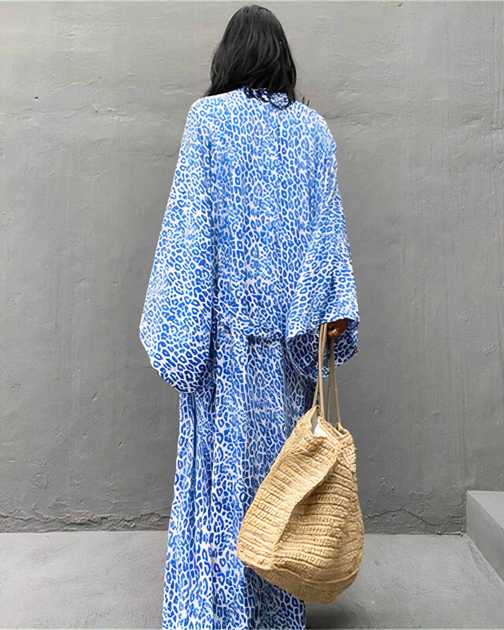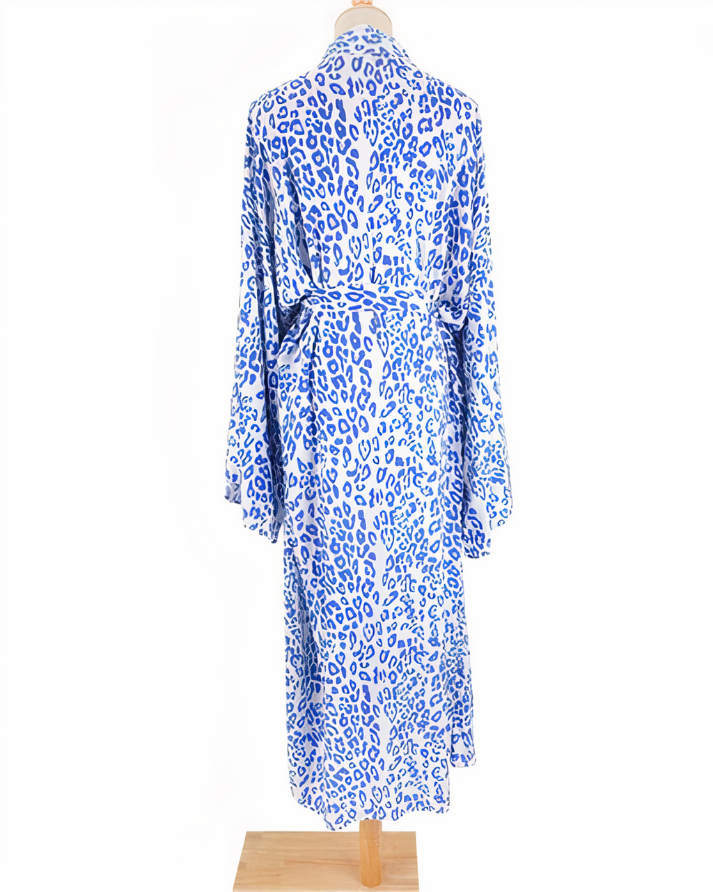 Vous recherchez un kimono de plage élégant et unique qui vous fera sortir du lot ? Ne cherchez pas plus loin que ce magnifique kimono bleu à imprimé léopard !