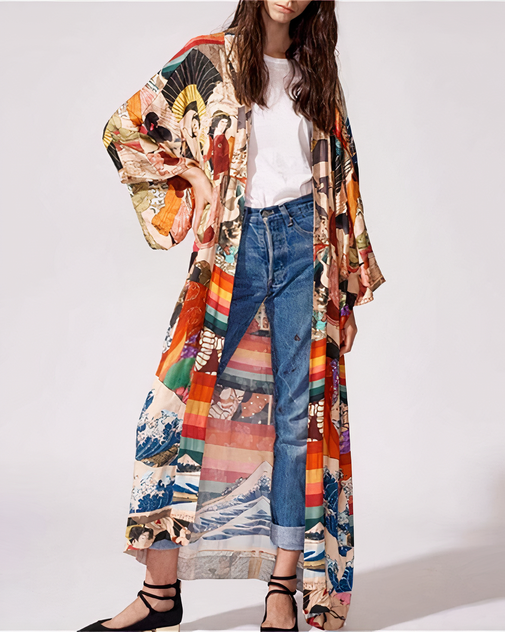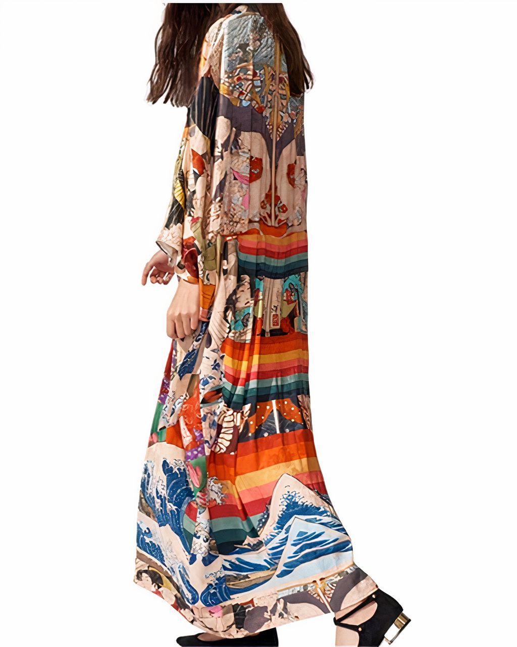 Voici notre magnifique nouveau kimono de plage à manches longues pour femmes ! Ce joli kimono est parfait pour une journée à la plage, ou à tout moment où vous voulez vous sentir en vacances. L’impression complexe est attrayante et vibrante, et la silhouette ample et fluide est ultra-flatteuse et confortable.