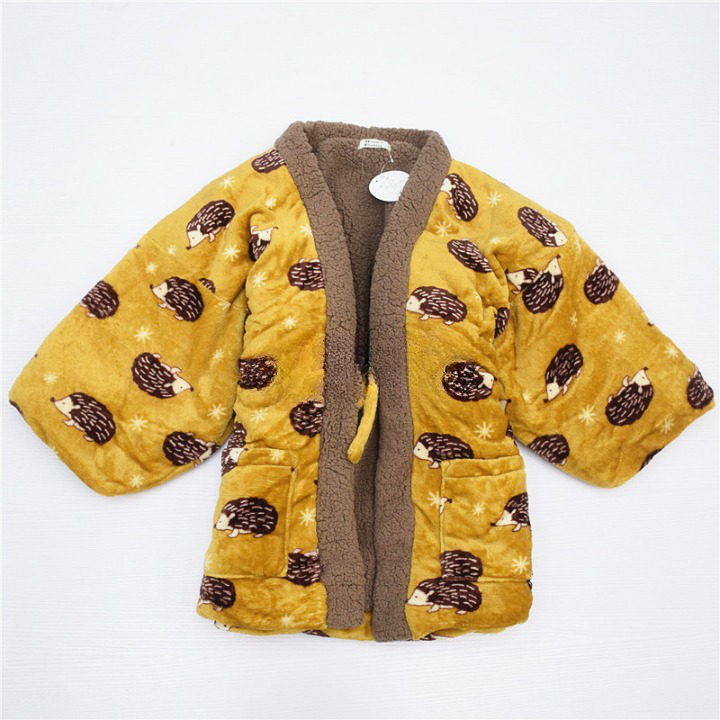 Le kimono polaire court beige avec petits hérissons est un vêtement d’intérieur à la fois confortable et élégant. Fabriqué à partir de tissu polaire doux et chaud, il est parfait pour se détendre à la maison ou pour se réchauffer après une douche ou un bain.