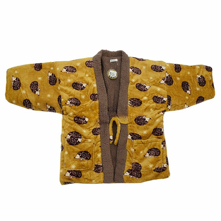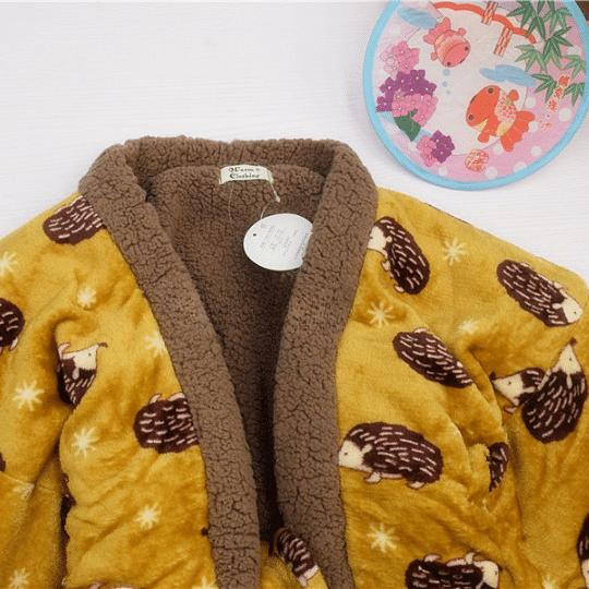 Le design du kimono est tout simplement adorable, avec des petits hérissons dessinés sur un fond beige clair. Les détails sont minutieux et les hérissons sont si mignons qu’ils ajoutent une touche de fantaisie à ce vêtement d’intérieur classique.