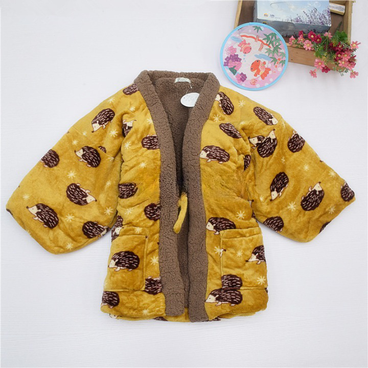 Le motif de petits hérissons ajoute une touche ludique et mignonne à l’ensemble, faisant de ce kimono un choix parfait pour les amoureux des animaux et les fans de la nature.