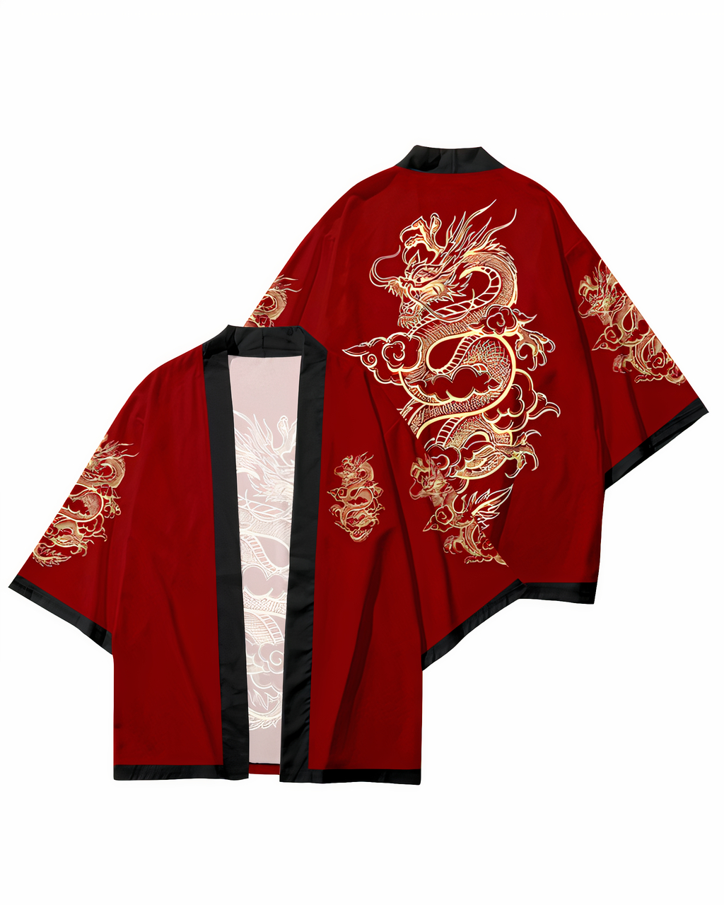 Les deux côtés de ce joli kimono rouge et doré sont travaillés avec précision et finesse. Qu’on vous regarde de face ou de dos, tout le monde va adorer les motifs travaillés et fins de votre kimono !