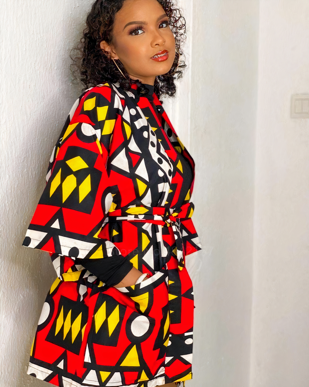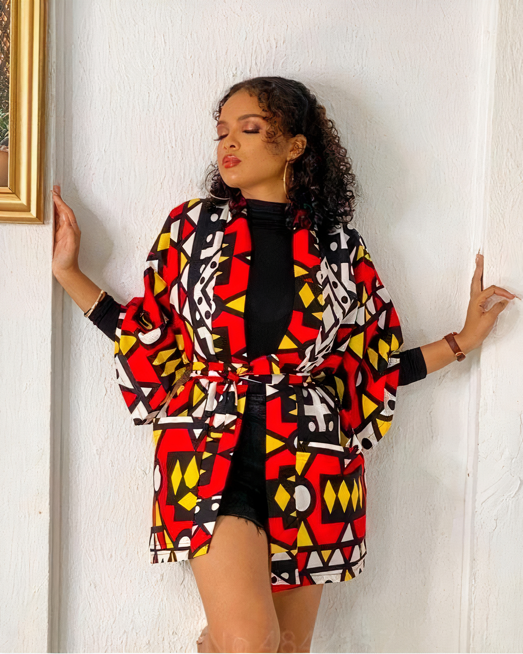 Voici quelque chose d’unique et d’accrocheur ! Notre nouveau kimono wax à motif géométrique est parfait pour vous. Fabriqué en polyester, il est doux au toucher et présente un motif coloré qui ne manquera pas de faire tourner les têtes.