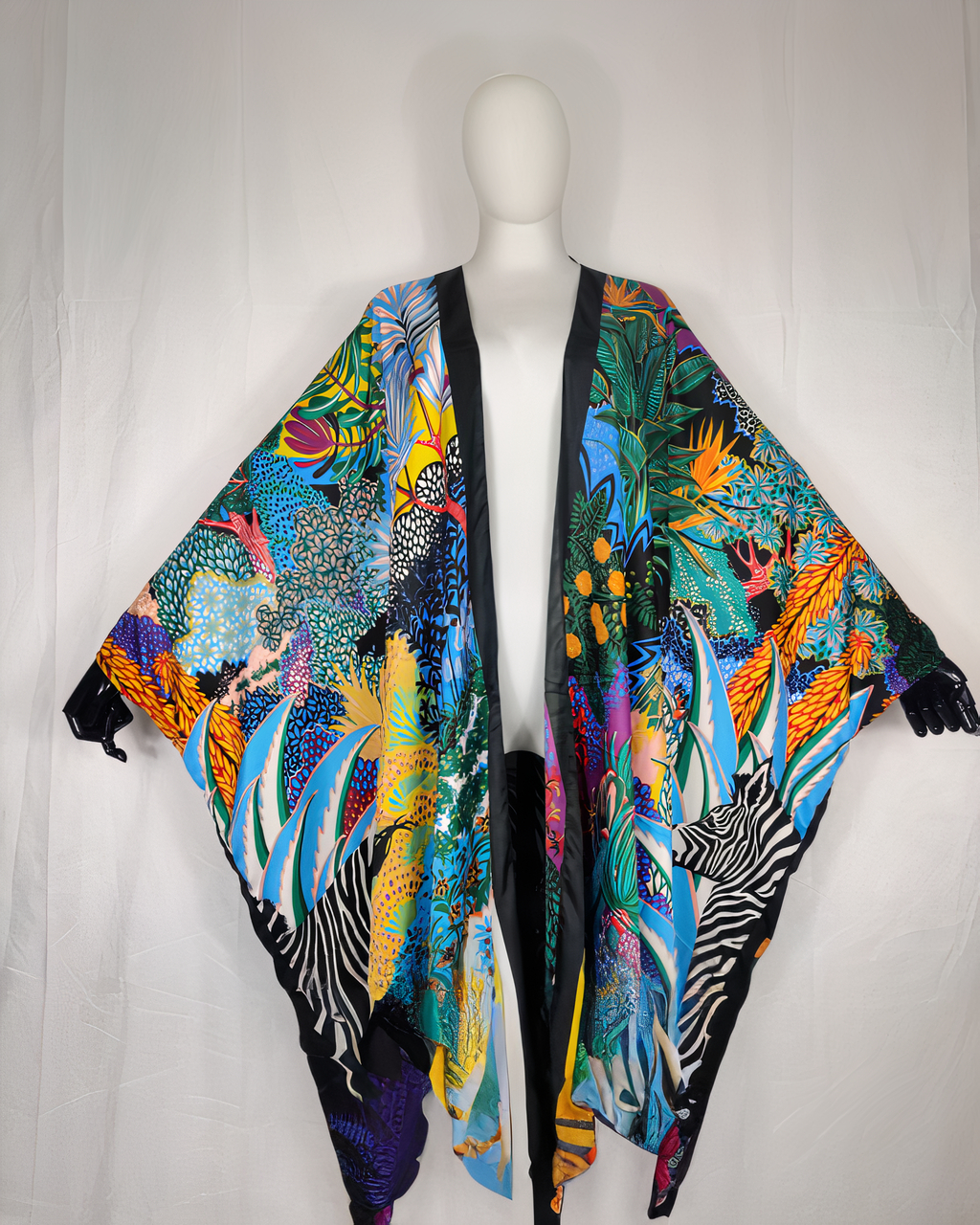 -25%Jouez la carte de l’originalité. Ce grand kimono bleu représente des motifs issus de la savane. À vous d’explorer chaque centimètre de tissu pour découvrir tous les détails qui s’y cachent. Ce kimono est confortable et élégant, il est idéal pour les sorties de printemps.