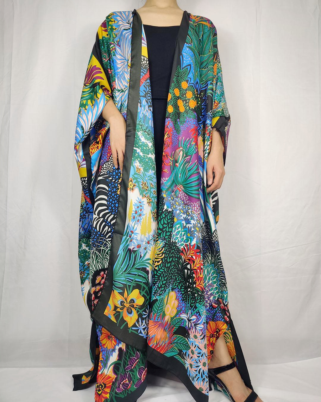 Long kimono oriental imprimé savane