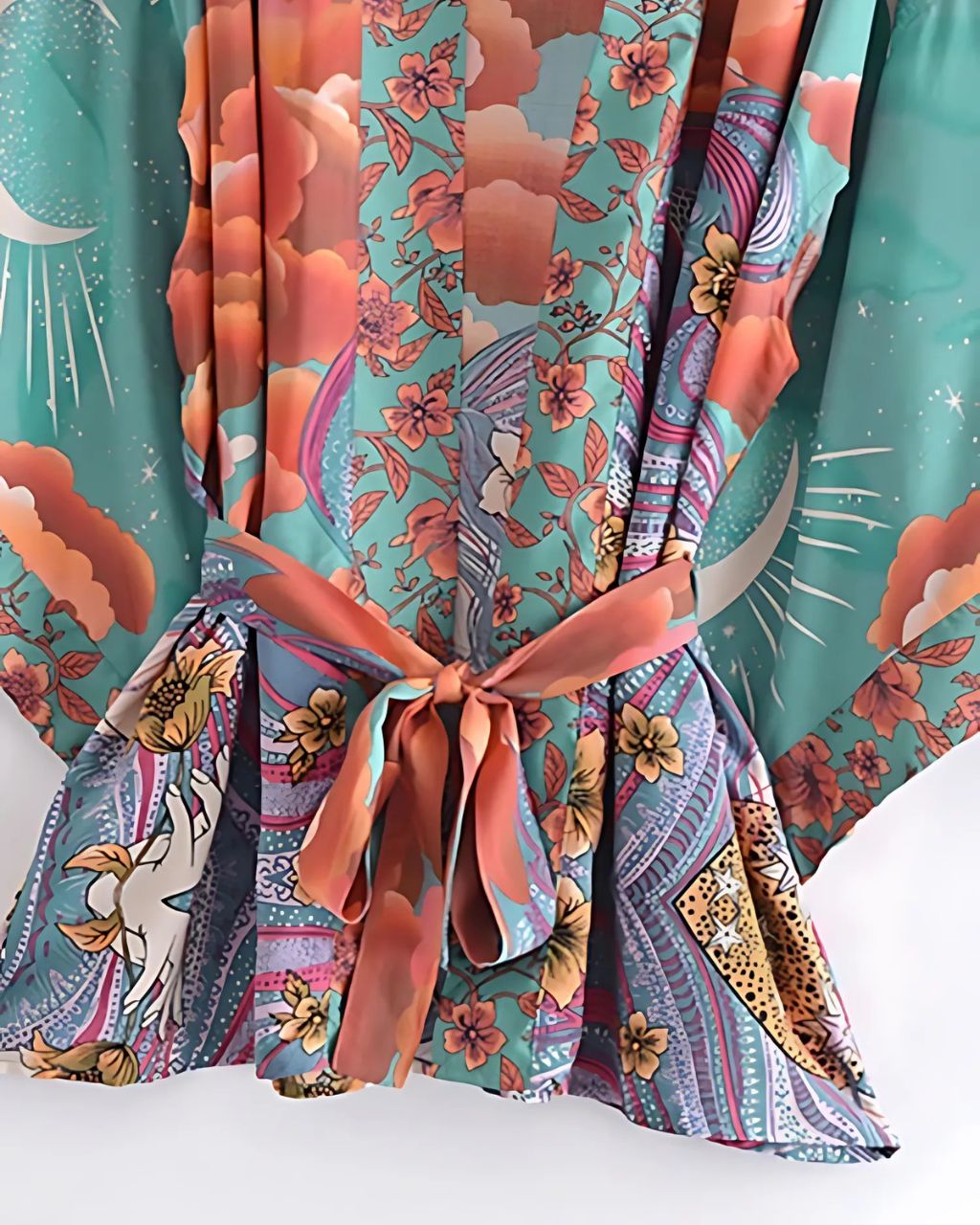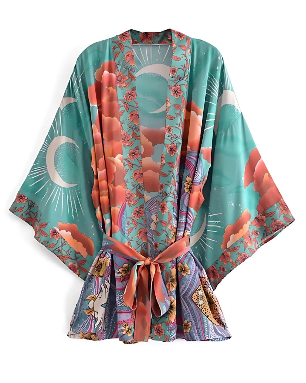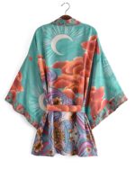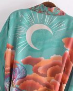 Laissez-vous séduire par l’aura envoûtante de ce peignoir kimono au style bohème. Ses motifs ésotériques, comme la lune et les symboles mystiques, insufflent un esprit vintage et libre à votre silhouette.