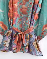 Ce peignoir kimono bohème vous enveloppe d’une douceur incomparable grâce à son tissu en coton et rayonne. Chaque mouvement devient une caresse, chaque geste une promesse de bien-être. Sa coupe fluide et ses manches larges vous offrent une liberté totale, vous permettant de vous sentir à l’aise et féminine à la fois.