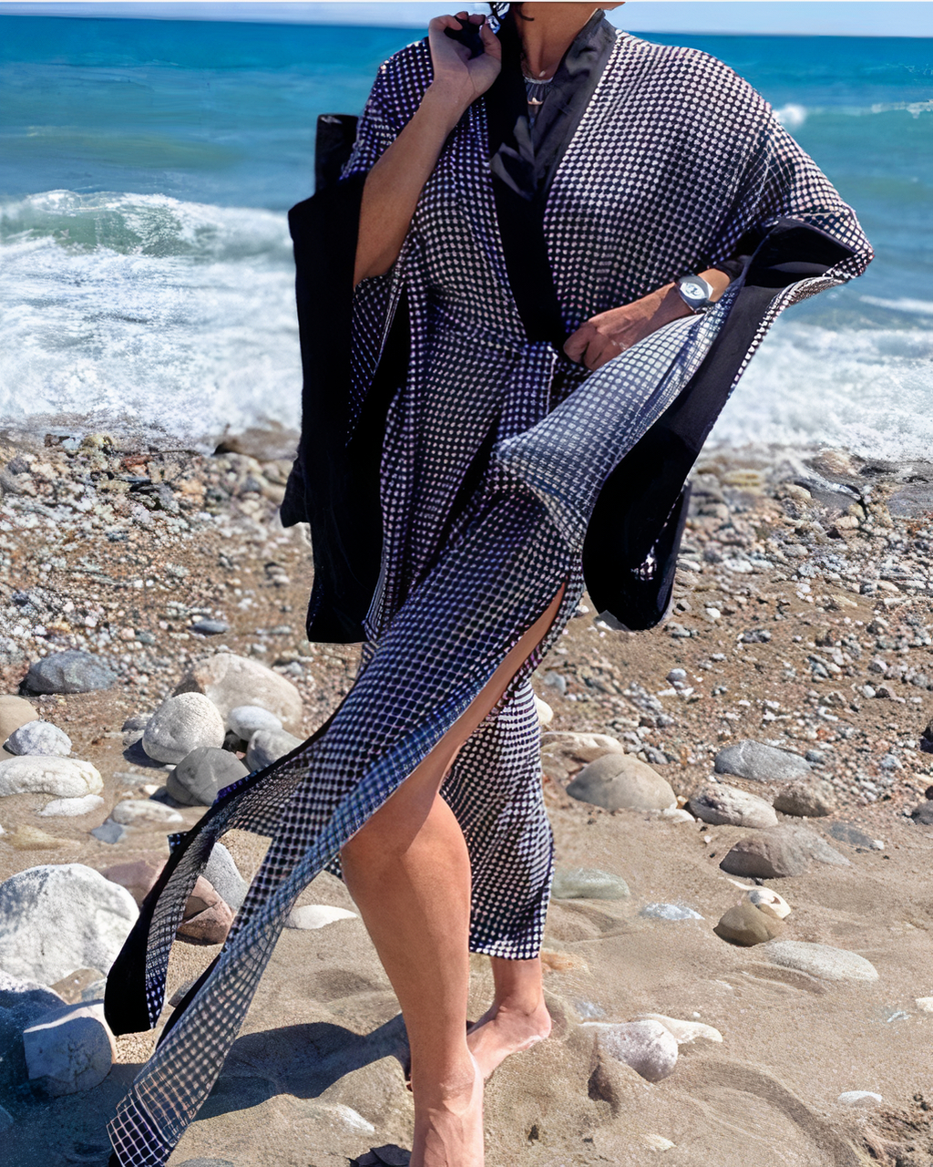 Voici notre superbe kimono bohème imprimé à carreaux ! Cette magnifique pièce est parfaite pour ajouter une touche de style et de personnalité à n’importe quelle tenue. La couleur bleu foncé est parfaite pour faire une déclaration, tandis que la taille unique le rend facile à porter et flatteur pour tout type de corps.