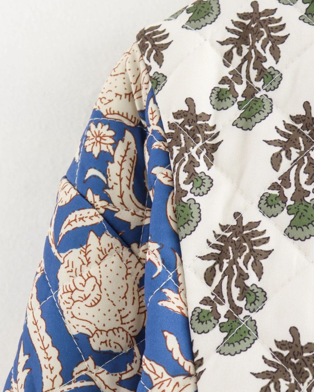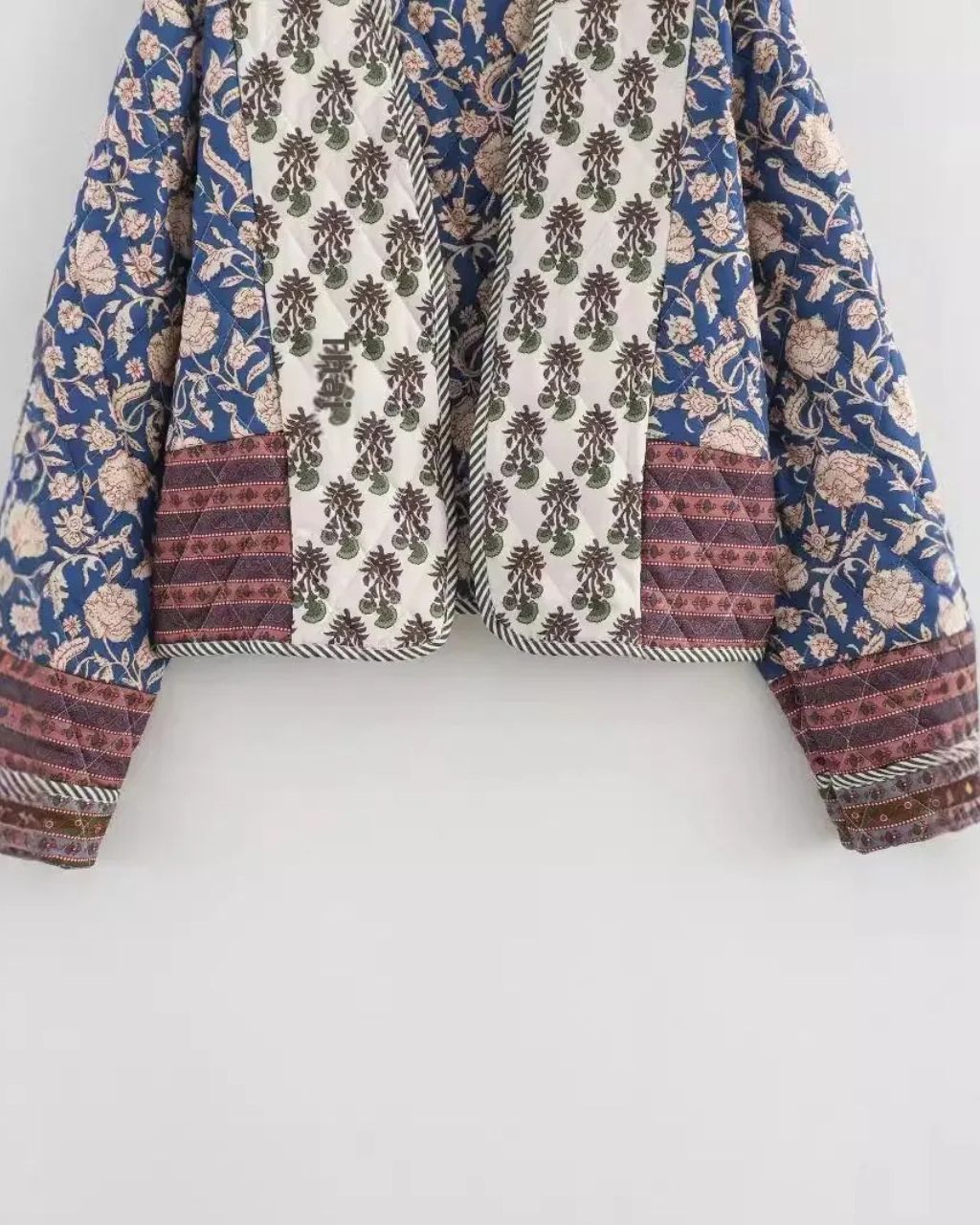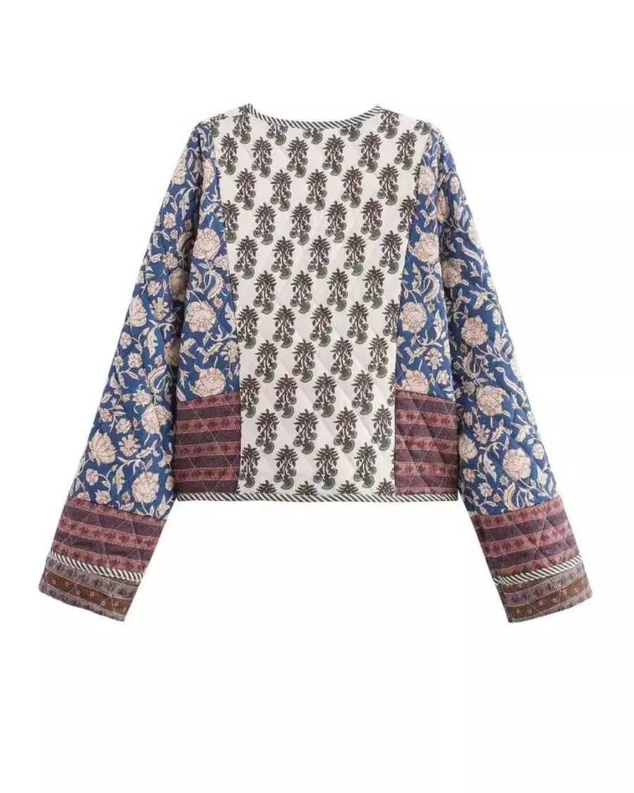Avec son patchwork d’imprimés floraux et sa coupe kimono légèrement oversize, cette veste matelassée devient la pièce maîtresse de votre dressing. Elle se porte aussi bien sur un jean qu’une robe fluide, pour une allure bohème pleine de caractère.