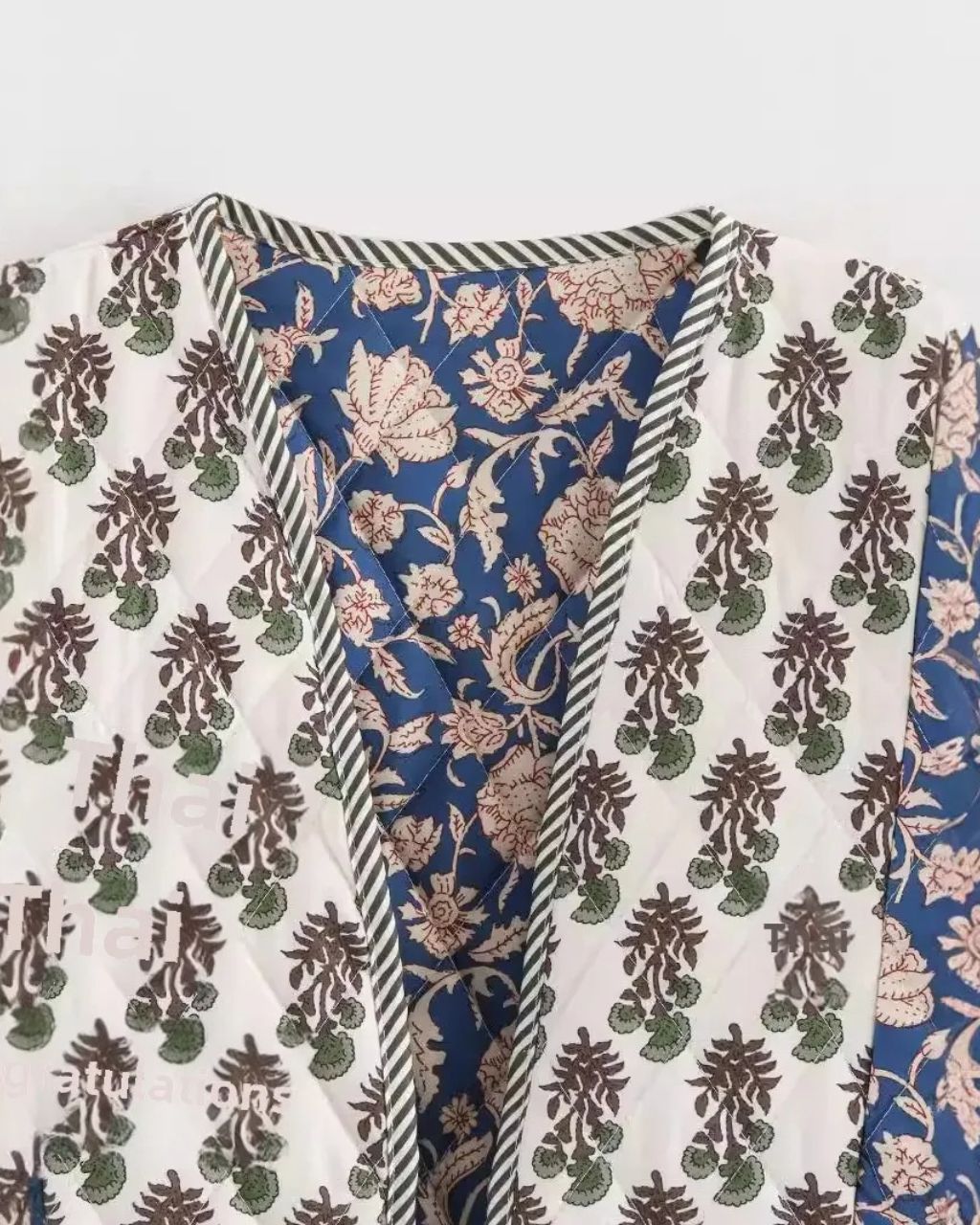 Entre fraîcheur matinale et douceur de fin d’après-midi, cette veste kimono matelassée fleurie devient votre alliée parfaite. Sa matière enveloppante, mais respirante, vous garde confortable du printemps aux premières brises d’automne.